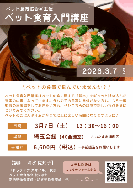「ペット食育入門講座」開催しています!
