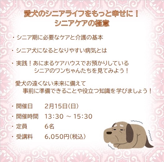 【愛犬のトータルケア講座】2月15日(日)